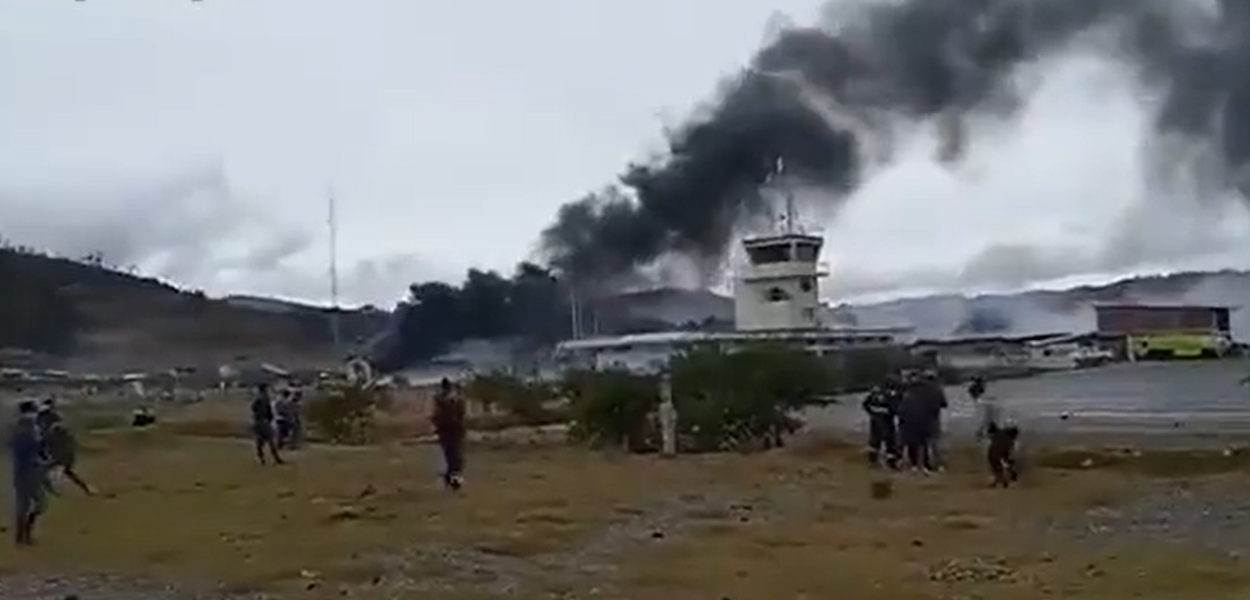 Manifestantes atearam fogo nas instalações do interior do aeroporto