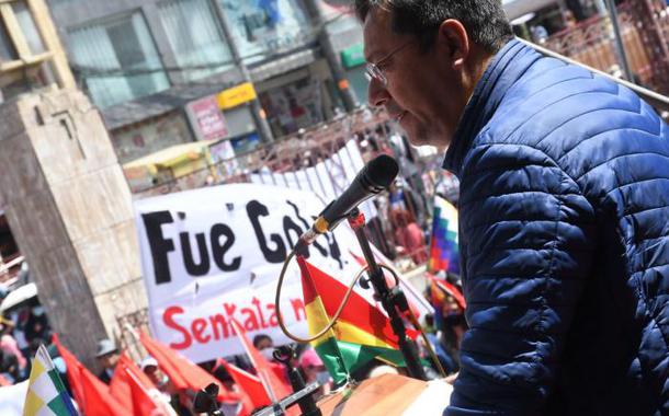 Presidente Luis Arce e ex-presidente Evo Morales participam de um ato de massa para rejeitar novas tentativas de golpe
