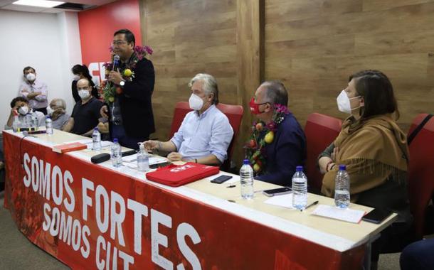 Estiveram presentes ao encontro com o presidente boliviano, Luis Arce, o presidente da CUT, Sergio Nobre, os petistas Luiz Marinho, Fernando Haddad e Eduardo Suplicy, entre outras lideranças