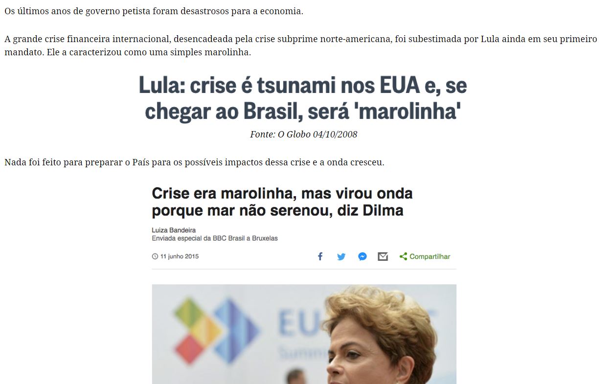 Não apenas negando as eventuais conquistas que o país obteve na última década, mas, principalmente, assustando um público ignorante em economia, suscetível e contaminado ideologicamente pelo discurso conservador, privatista, entreguista e antibrasileiro vigente.