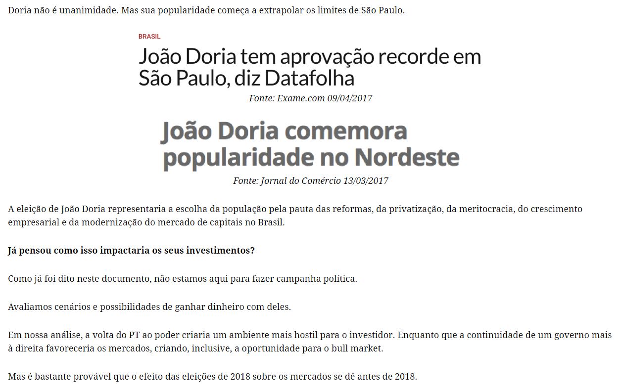 Por trás dela, estava uma empresa de "consultoria" cuja principal missão tem sido, nos últimos anos, a de explorar e apoiar abertamente o anticomunismo e o antipetismo no Brasil, adotando o sensacionalismo mais vulgar e o mais descarado terrorismo econômico, mesma estratégia que adota em outros "mercados", como Portugal, por exemplo.