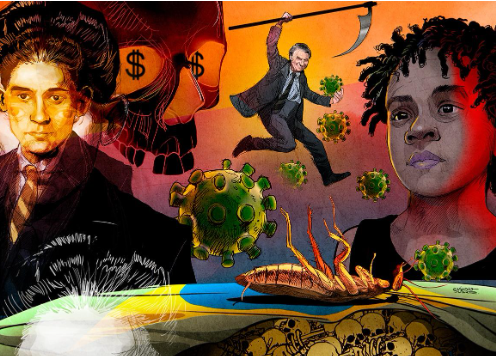 Grete Samsa nunca foi figura exclusiva do século XX. Inspiração de nossos tempos, foi nela que pensei, mais uma vez, enquanto a TV Globo noticiava os resultados das eleições no Brasil. Assombrada, vi Grete Samsa saltando por cima dos quase 700 mil mortos pela covid-19 em nosso país — porque, sim, a morte perdeu o poder que tinha de abalar profundamente os seres humanos, sobretudo se avaliarmos que a pandemia não foi a mesma para todos: enquanto 55% de negros que contraíram a covid-19 morreram por causa da doença, a proporção de mortes pela mesma causa entre brancos foi de 38%. Mortes que não ameaçam nos desestruturar porque são corpos matáveis, já pensando aqui com o filósofo Achille Mbembe. Só o desaparecimento sem rastro da morte, que nos chega no meio de múltiplas imagens, pode explicar o desempenho de Bolsonaro, um presidente que riu da morte de milhares de pessoas. Só o fato de a morte ser digerida com tanta rapidez fez Bolsonaro eleger parlamentares com tanto desprezo pela vida.