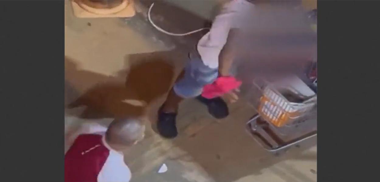 Um vídeo amador mostra o momento do ataque. A vítima, em desespero, chega a ajoelhar durante a agressão.