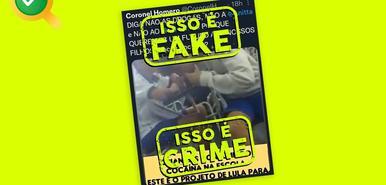 Site do Lula - O candidato a deputado federal, Coronel Homero, publicou em seu Twitter um vídeo de crianças cheirando sal, em uma escola carioca, com uma chamada completamente mentirosa e apelativa. A fake news induz o leitor a acreditar que as crianças estavam usando cocaína, e pior: “por influência da cantora Anitta, apoiada pelo candidato a presidente, Luiz Inácio Lula da Silva”. O bolsonarista não apenas espalha fake news. Ele efetivamente comete crime ao expor a imagem dessas crianças, que deveriam ser protegidas.