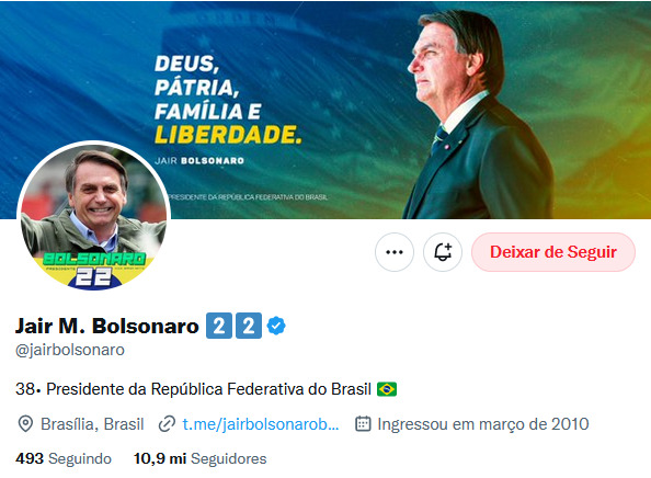 Bolsonaro muda descrição nas redes para “38º presidente da República Federativa do Brasil”