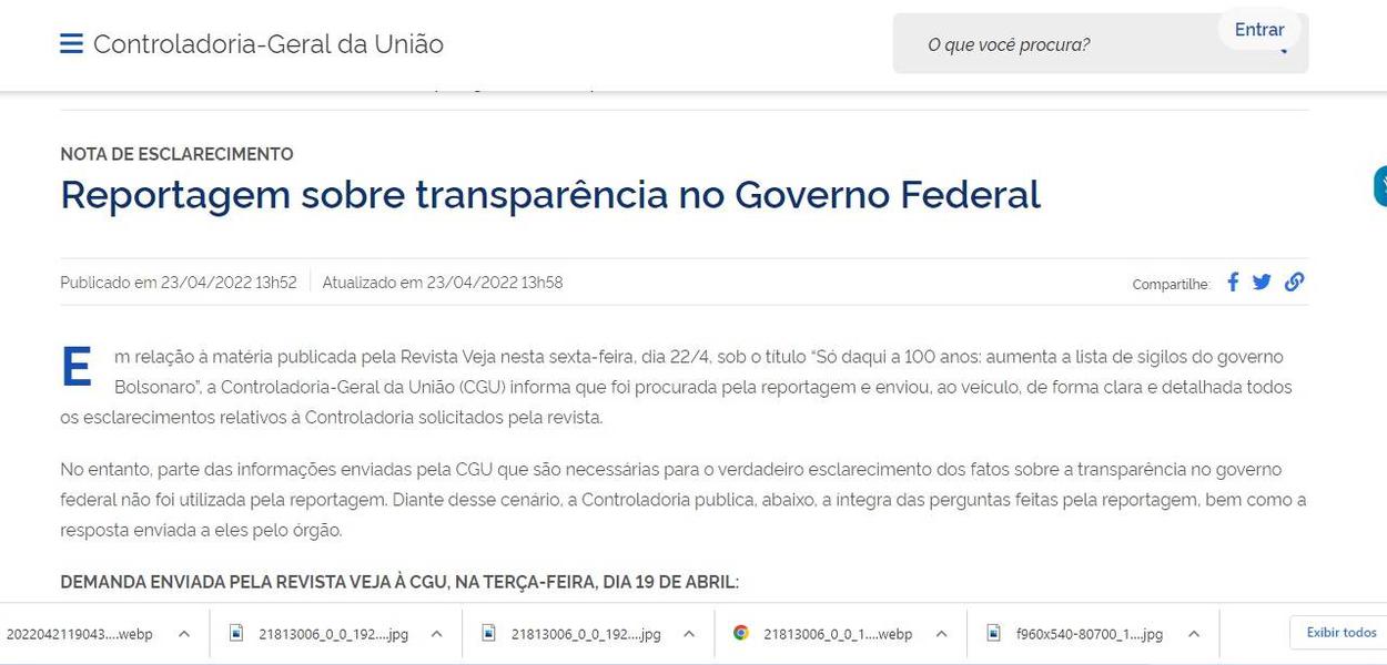 A revista publicou reportagem sobre o sigilo de cem anos imposto por Bolsonnaro em questões envolvendo também seus parentes em que a CGU informou que "o sigilo sobre visitas dos filhos do presidente foi justificado pelo GSI como questão de segurança e que os dados devem ser liberados ao fim do mandato de Bolsonaro".