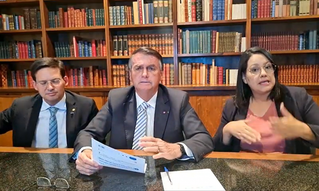 “Já bota aí no… naquele canal”, pediu o ex-capitão.