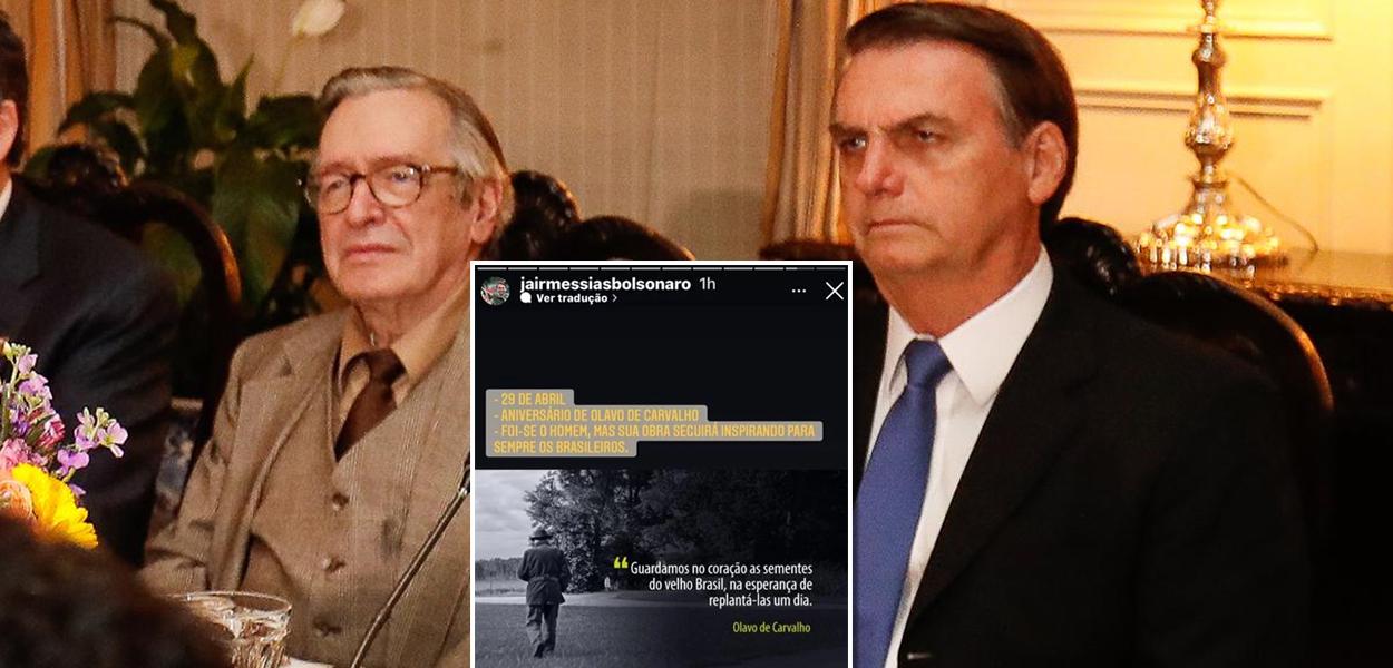 “29 de abril. Aniversário de Olavo de Carvalho. Foi-se o homem, mas sua obra seguirá inspirando para sempre os brasileiros”, postou Bolsonaro em seu “Stories” do Instagram.