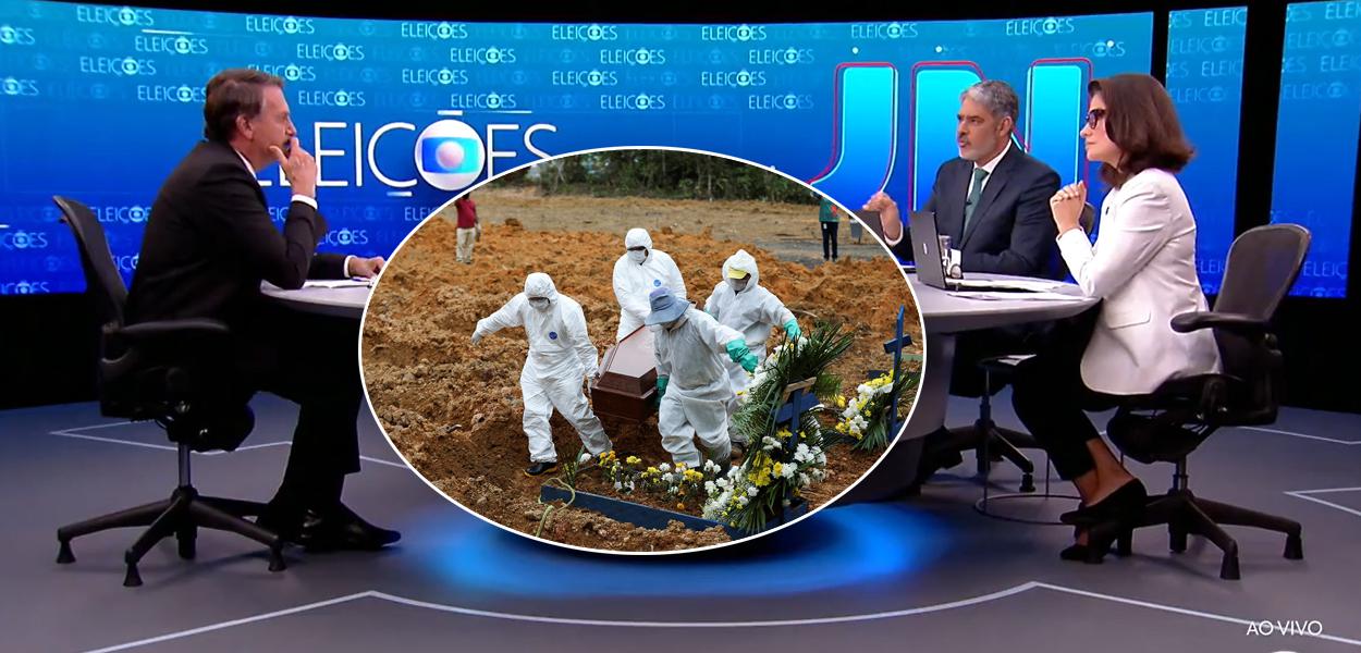 Ao contrário das declarações feitas por Jair Bolsonaro durante a entrevista, vídeo mostra que ele desdenhou o avanço da pandemia e debochou das vítimas da Covid-19 no Brasil