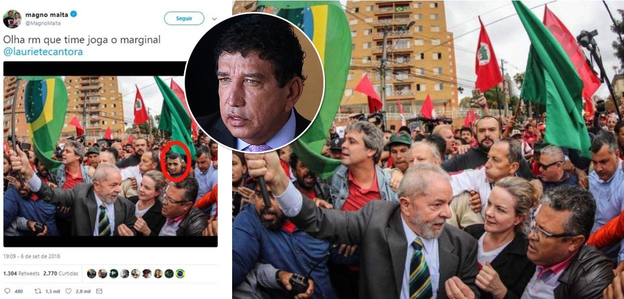Magno Malta, que aparece no novo vídeo da suposta facada, já espalhou fake news ligando o caso ao PT