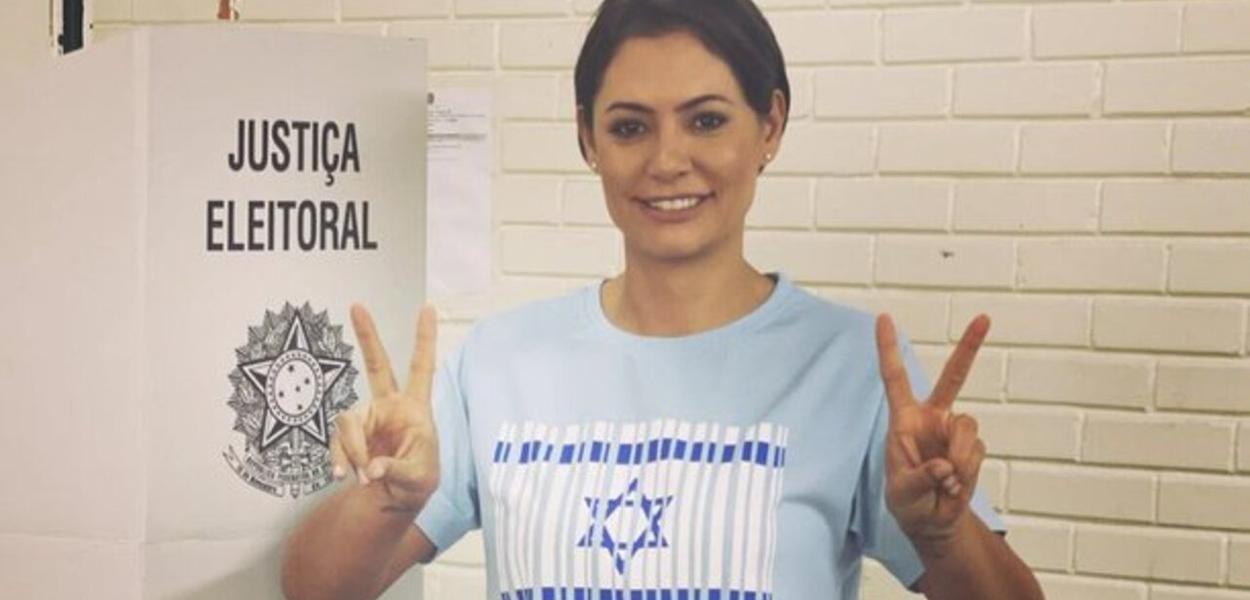 Michelle Bolsonaro vota no Distrito Federal usando camisa em homenagem a Israel
