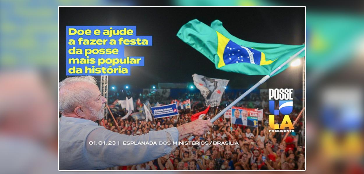 Site de campanha virtual de arrecadação para a festa da posse de Lula está no ar