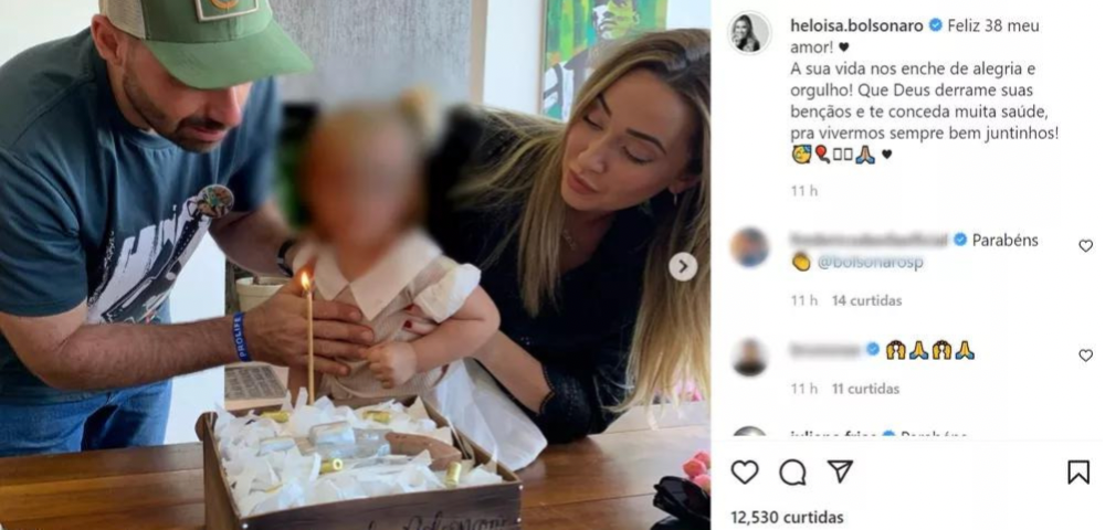 "Feliz 38 meu amor! A sua vida nos enche de alegria e orgulho! Que Deus derrame suas bênçãos e te conceda muita saúde, pra vivermos sempre bem juntinhos!" escreveu Heloísa, mulher do parlamentar, na rede social.