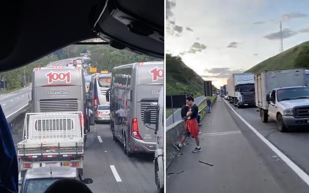 Apoiadores de Bolsonaro atearam fogo em pneus em pontos da rodovia: "vamos parar o Brasil, chega de sermos burros", diz um deles