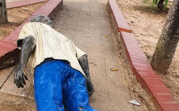 A vandalização da estátua que homenageia o líder seringueiro e ambientalista Chico Mendes aconteceu em Rio Branco, no Acre