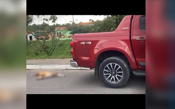 O animal, aparentemente desacordado, foi amarrado pelas patas dianteiras em uma caminhonete e arrastado pelo asfalto