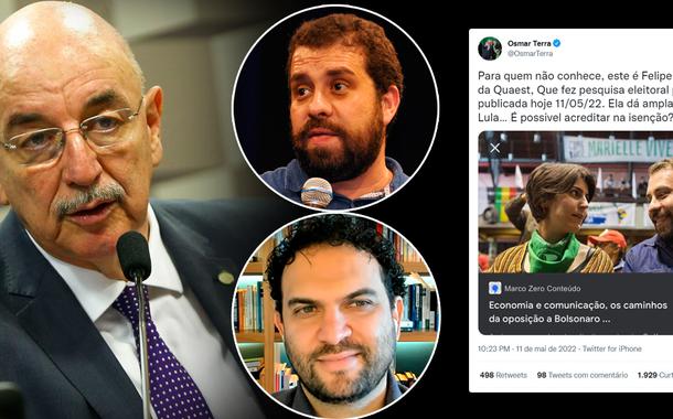 “Prezado Osmar Terra Plana, não me chamo Felipe nem sou diretor de Instituto de Pesquisa. Melhore!”, escreveu Guilherme Boulos em uma publicação no Twitter