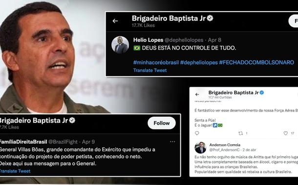 As curtidas do comandante da Aeronáutica vão desde o apoio à reeleição de Bolsonaro até ataques à esquerda e à cantora Anitta