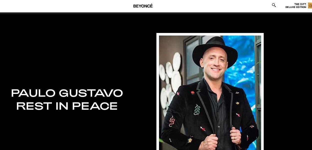 Beyoncé utilizou uma foto do ator, diretor e humorista Paulo Gustavo em seu site oficial para homenageá-lo com a frase “Descanse em Paz"