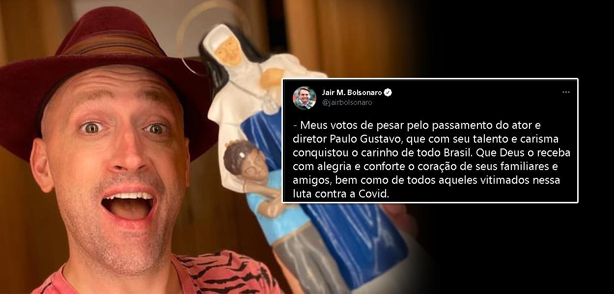 Bolsonaro escreveu: “Meus votos de pesar pelo passamento do ator e diretor Paulo Gustavo, que com seu talento e carisma conquistou o carinho de todo Brasil. Que Deus o receba com alegria e conforte o coração de seus familiares e amigos, bem como de todos aqueles vitimados nessa luta contra a Covid.”