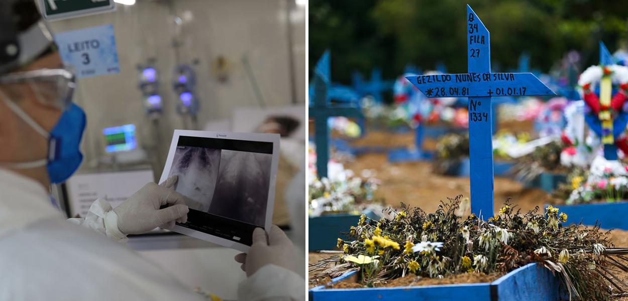 De acordo com a Johns Hopkins University, o Brasil tem uma taxa de 1.731,6 mortos/milhão e já ultrapassou os EUA, que estão na primeira posição em números absolutos de casos e mortes causadas pela pandemia