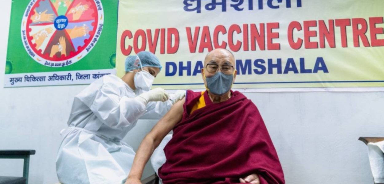 Dalai Lama se inscreveu para a vacinação logo assim que a campanha teve início na Índia, em 1º de março. Ele recebeu uma dose da vacina Covishield, que é produzida na Índia com tecnologia desenvolvida pela AstraZeneca/Oxford.