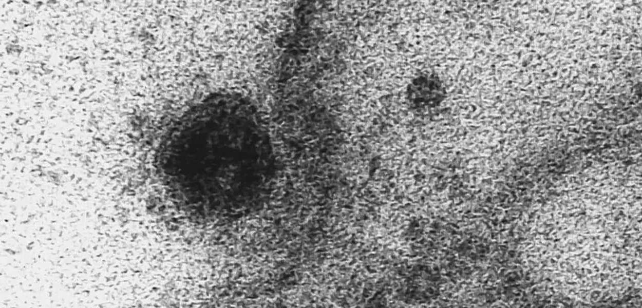 Em uma terceira imagem, partículas virais podem ser observadas dentro do interior da célula.