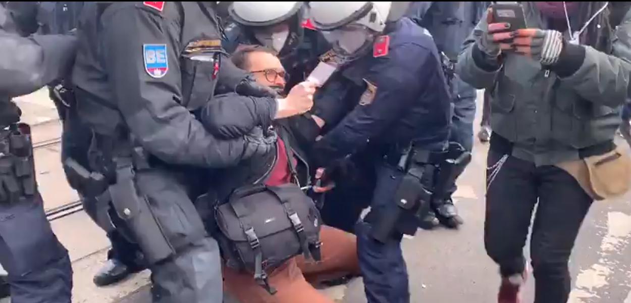 O grupo era liderado pela extrema direita, que nega a pandemia e hostiliza a mídia. A polícia dispersou os manifestantes após 15 minutos