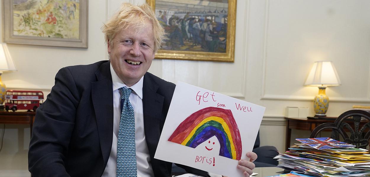 Boris Johnson teve teste positivo da COVID-19 no dia 27 de março após apresentar sintomas leves da doença e realizar o teste no dia anterior.