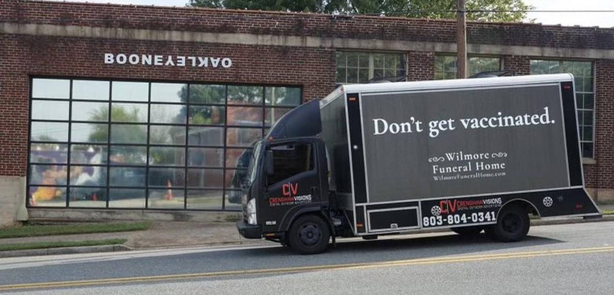 'Não se vacine': mensagem em caminhão funerário promove campanha contra a Covid, nos EUA