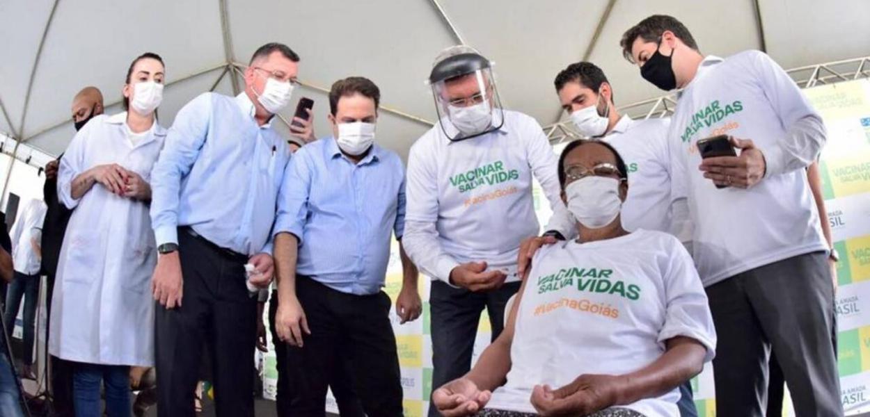 O governador Ronaldo Caiado, que é médico, injetou o imunizante no braço de Maria Conceição da Silva, 73 anos, por volta das 17h. Segundo a assessoria do Governo de Goiás, Maria trabalhou como doméstica e gari. Ela ficou cega de um olho e tem problemas de hipertensão. Hoje, Maria mora no Abrigo dos Velhos Professor Nicéphoro Pereira da Silva, em Anápolis. A idosa tem seis filhos.