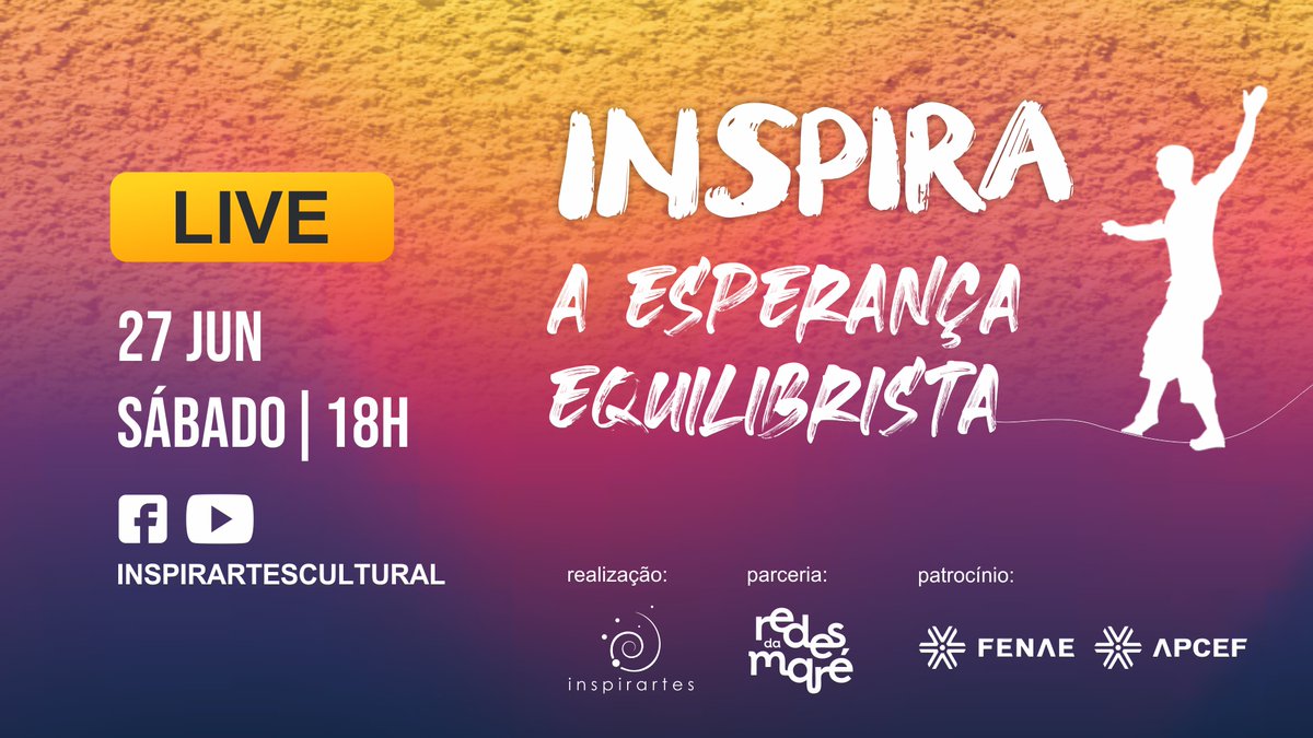 Segundo Carlos Netto, ex-bancário do Banco do Brasil e idealizador da live, a ideia é realizar mais encontros neste formato com a parceria da Redes da Maré. “’Inspira: A Esperança Equilibrista’ nos ajuda a entender que não estamos sozinhos. Há uma rede de pessoas fazendo aquilo que edifica o espírito humano por meio da arte”, destaca.