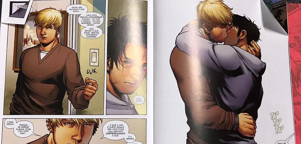 Ao longo desta semana, correntes em redes sociais reclamavam da cena, em uma das páginas, em que dois personagens masculinos se beijam.