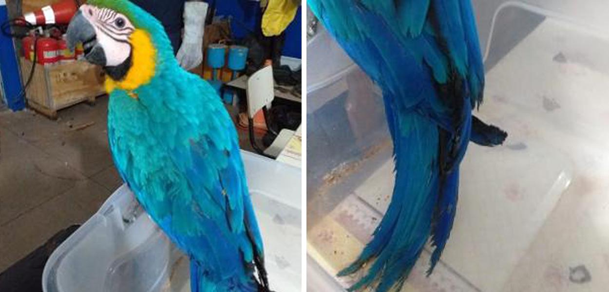 Uma Arara Canindé foi resgatada na noite de quinta-feira, 17, após bater no portão de um motel em Três Marias, Minas Gerais, fugindo de um incêndio