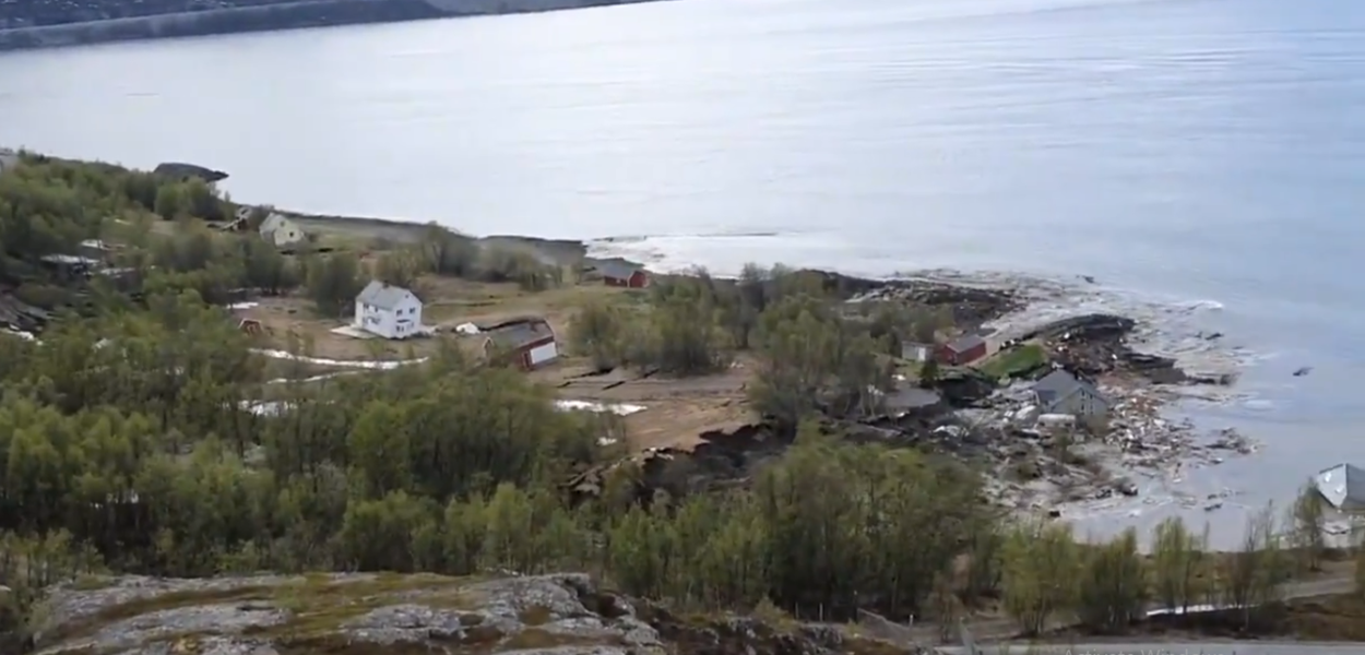 247 - A região norueguesa de Finnmark registrou na quarta-feira (3) um deslizamento de terras que destruiu casas e jogou os edifícios no mar do norte do país. O movimento foi de cerca de 800 metros e ninguém ficou ferido.
