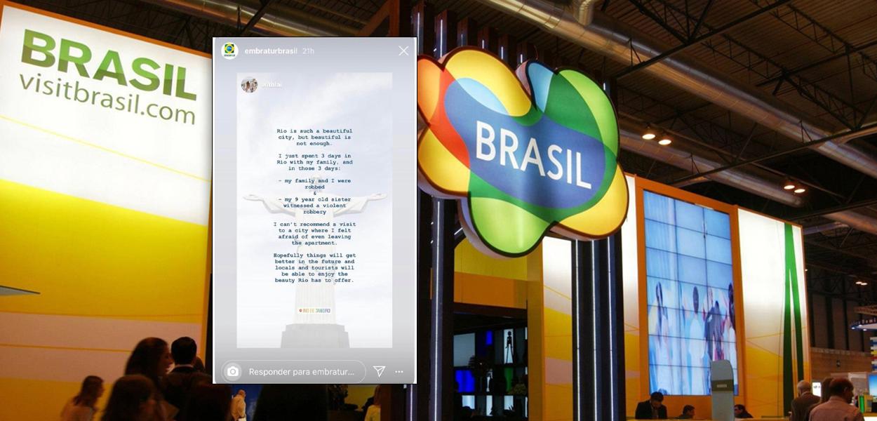 No post compartilhado pela Embratur no Instagram, uma turista brasileira afirma em inglês que não pode "recomendar uma visita a uma cidade onde tive medo de sair do apartamento". Um internauta criticou a empresa. "Não entender inglês pode ser um problema para quem quer promover o turismo....", disse