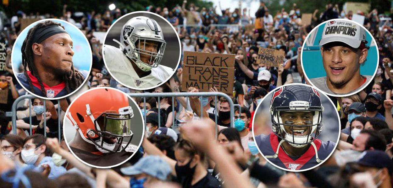 247 - Jogadores da liga de futebol americano dos Estados Unidos, NFL, se reuniram em um vídeo para protestar contra a morte de George Floyd, homem negro de 46 anos que foi sufocado por um policial. Ao todo, 18 jogadores participaram do vídeo, cobrando um posicionamento oficial da liga. Quantas vezes precisamos pedir para você ouvir seus jogadores?", pergunta Tyrann Mathieu. "O que será preciso", diz DeAndre Hopkins, que é completado por Jarvis Landry: "Para um de nós ser assassinado por brutalidade policial?"