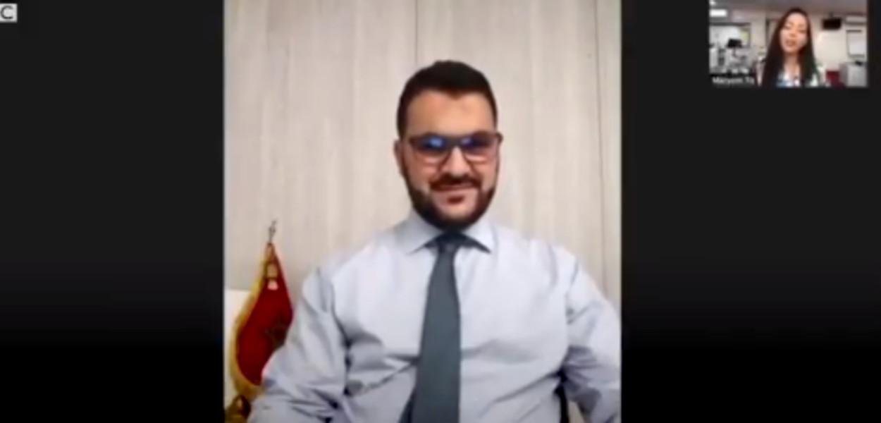 Imagens divulgadas pela emissora britânica nesta quarta-feira (5) mostram que a força da explosão fez com que a repórter fosse derrubada da cadeira em meio a uma entrevista realizada por videoconferência com Faisal Al-Aseel, coordenador de projetos da Agência para Energia Sustentável do Marrocos.