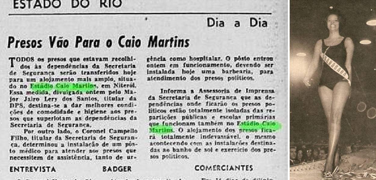 Numa condição pioneira o Brasil instituiu o primeiro estádio/prisão de que se tem notícia. Esse pioneirismo declinaríamos de bom grado, mas foi mesmo assim, no alvorecer da ditadura, que já no dia 23 de abril de 1964, o jornal O Fluminense estampava na coluna Dia a Dia, na página 3, a chamada: Presos vão para o Caio Martins.