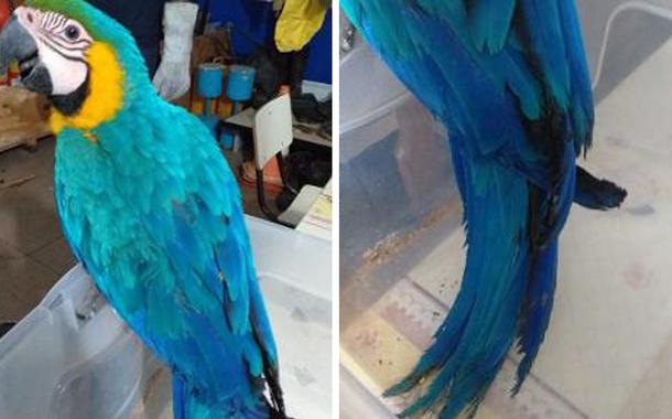 Arara é resgatada com penas queimadas após bater em portão de motel em MG