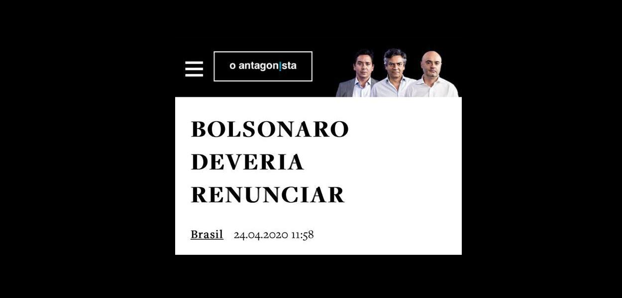 A página ‘lavajatista’ O Antagonista publica que, “depois das revelações feita por Sergio Moro, não há mais condição de Jair Bolsonaro permanecer no cargo”