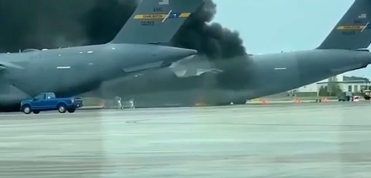 Sputnik - Na sexta-feira (9), um avião de transporte C-17 Globemaster III da Força Aérea dos EUA pegou fogo na pista da Base Conjunta de Charleston.