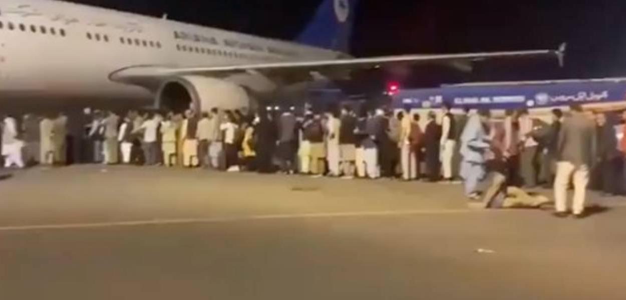 As imagens compartilhas nas redes sociais mostram o desespero das pessoas tentando deixar o país após o Talibã ter ocupado a capital.