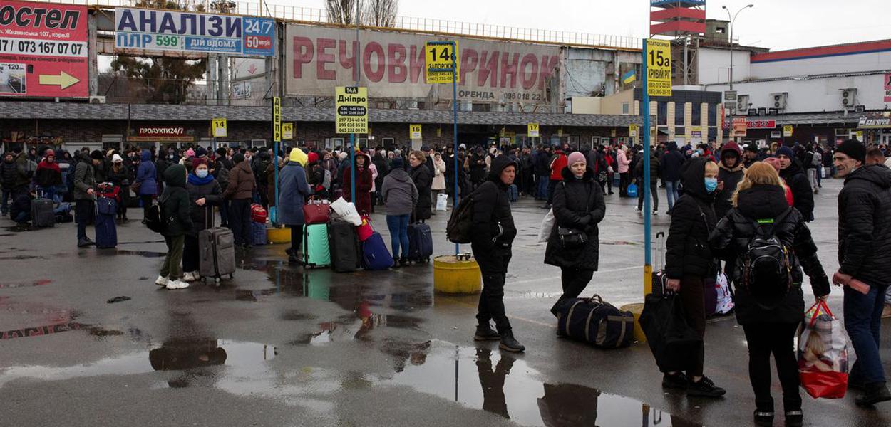 Ucranianos estão procurando novos abrigos após a ação militar russa no território, em um conflito que também envolve EUA e outras potência europeias