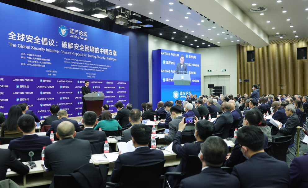 "Esta manhã, nosso ministério realizou o Fórum Lanting e lançou oficialmente o Documento Conceitual da Iniciativa de Segurança Global. O ministro das Relações Exteriores, Qin Gang, participou da cerimônia de abertura e fez um discurso de abertura. O ex-secretário-geral da ONU, Ban Ki-moon, e o ex-presidente da Eslovênia, Danilo Türk, abordaram o evento por meio de mensagens de vídeo. Ex-dignitários políticos, enviados diplomáticos e representantes de organizações internacionais na China e renomados especialistas e acadêmicos do país e do exterior participaram deste evento no formato online e offline. Eles tiveram discussões que analisam as formas de implementar o GSI e resolver os desafios de segurança enfrentados pela humanidade. O evento foi um sucesso total", declarou o porta-voz Wang Wenbin.