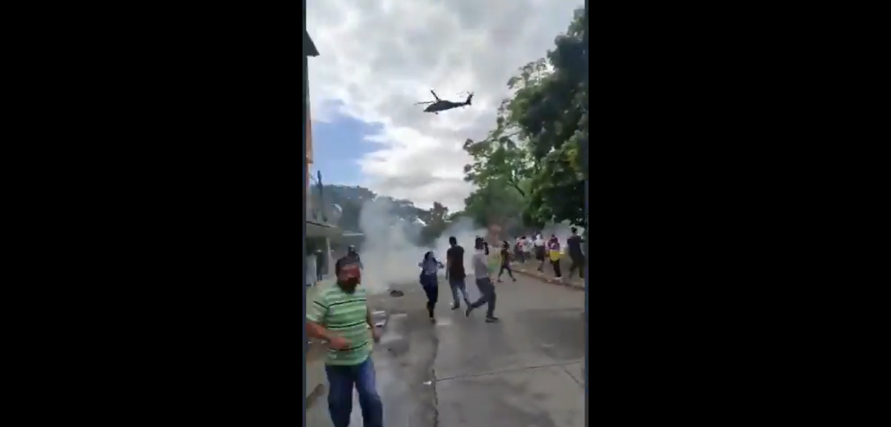 Vídeo que circula nas redes sociais mostra o governo colombiano usando helicóptero para reprimir manifestantes, que ocupam as ruas do país contra a política neoliberal de Iván Duque desde 28 de maio