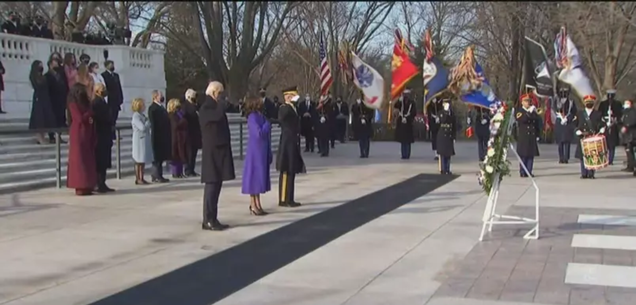 247 - Em uma das solenidades da cerimônia de posse, o presidente dos Estados Unidos, Joe Biden, participou na tarde desta quarta-feira (20) de uma homenagem aos mortos em guerras.