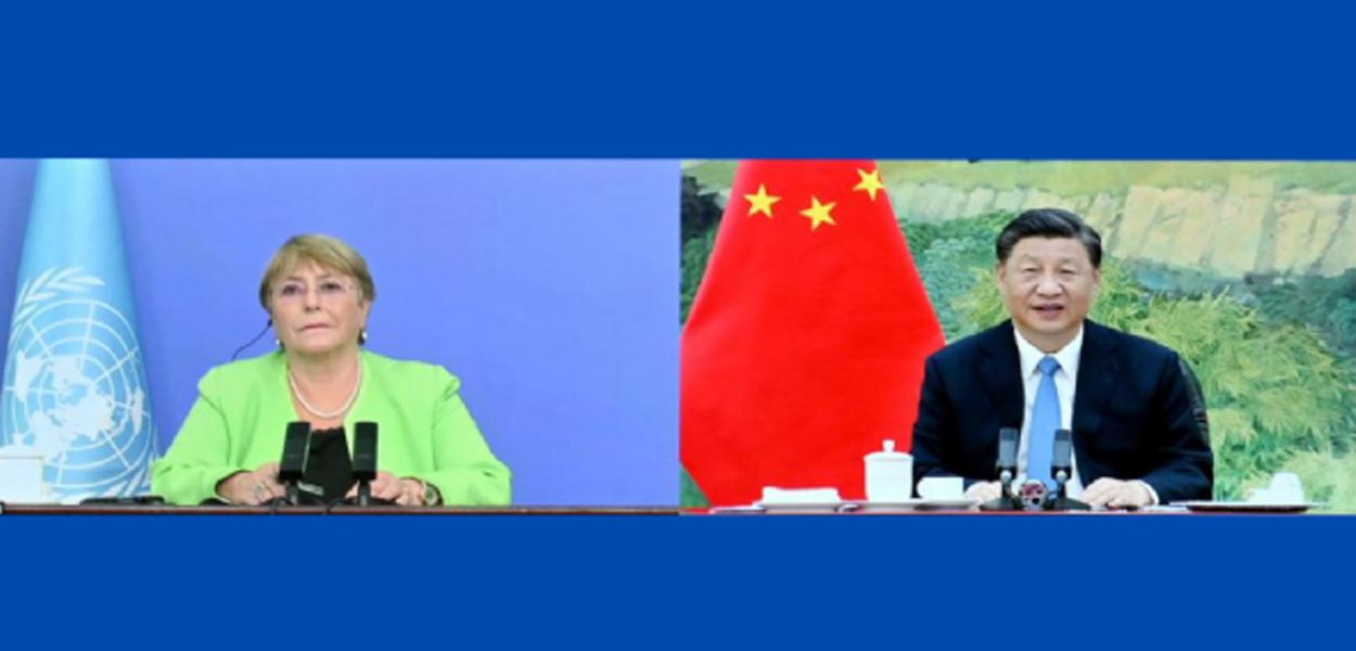 247 - O presidente chinês, Xi Jinping, participou de uma videochamada com a chefe de direitos humanos da ONU, Michelle Bachelet, na quarta-feira, 24, enquanto ela visitava a região autônoma de Xinjiang.