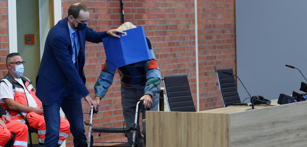 No início do julgamento, seu advogado segurou uma pasta azul para ocultar o rosto do cliente quando ele foi levado ao tribunal de Neuruppin, perto de Berlim.