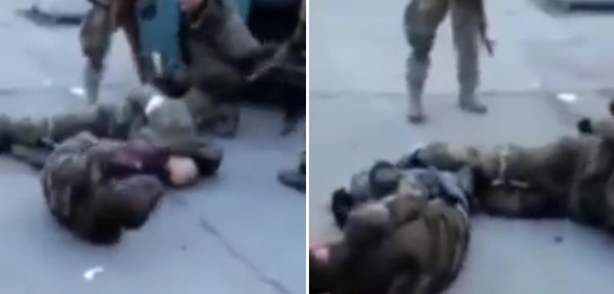 Confira o vídeo com o momento em que os soldados capturados são atingidos nas pernas. (atenção: imagens fortes)